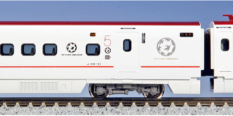 KATOではすでに発売し、好評をいただいている九州新幹線800系を、実車同様にアップグレード。窓配置の変更や全面的なロゴ変更を行なった、新装800系新幹線をお届けいたします。