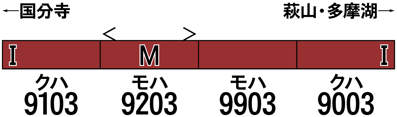 ■編成の短縮・ワンマン化改造が実施され、多摩湖線で活躍する西武9000系9103編成