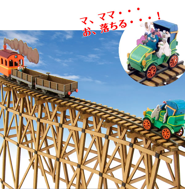 パズーとシータがスラッグ渓谷を走る機関車に乗ってドーラ一家の乗ったオートモービルから逃げているシーンをみにちゅあーとで再現です♪