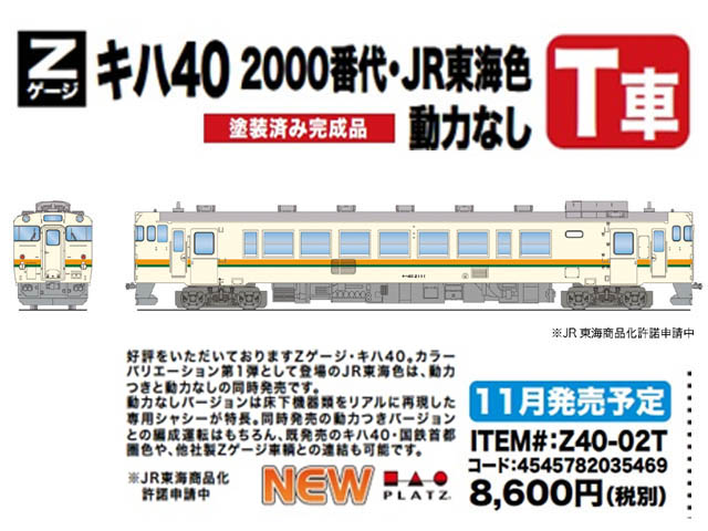 同時発売のJR東海色(動力つき)との編成運転はもちろん、既発売のキハ40・国鉄首都圏色や、他社製Zゲージ車輌との連結も可能です。