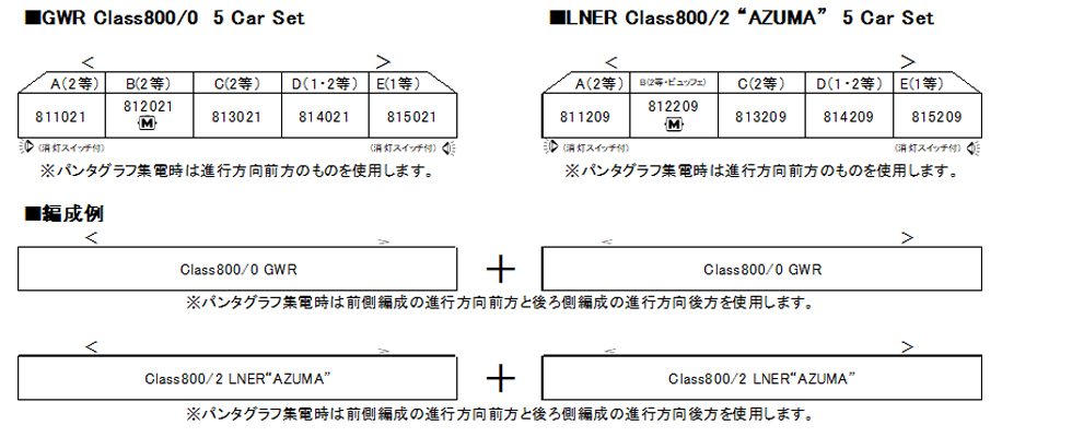 英国の主幹線であるGWR(グレート・ウエスタン鉄道)とLNER(ロンドン・ノース・イースタン鉄道)で活躍中の編成のうち5両編成のものを製品化。先頭部連結機構装備のため、実車で見られる5+5両の10両編成の再現も可能です。