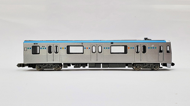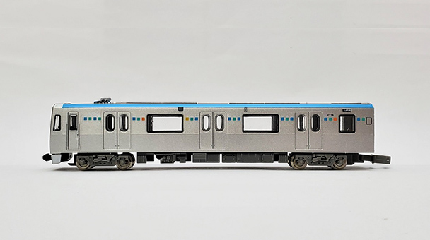 先頭車前面の兜の前立てをイメージした三日月ラインの色が異なる2編成を製品化します。
