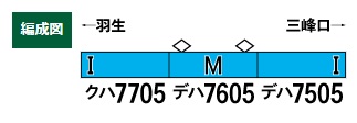 秩父鉄道への入線に際し、ワンマン化改造、中間車テ?ハ7600形のハ?ンタク?ラフの増設、冷房装置の1基撤去なと?か?あけ?られます。