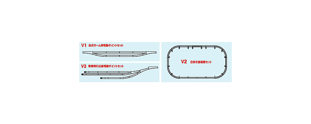 ● 「マスターシリーズ」パワーパック付基本エンドレスセット「マスター1」「マスター2」に追加して、多様な線路プランの展開が可能