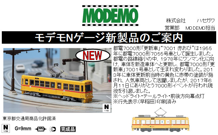 都電の路線縮小の中、1978年にワンマン化に向け、車体を新造車体へと更新し都電7000形「更新車」7001号車として生まれ変わりました。