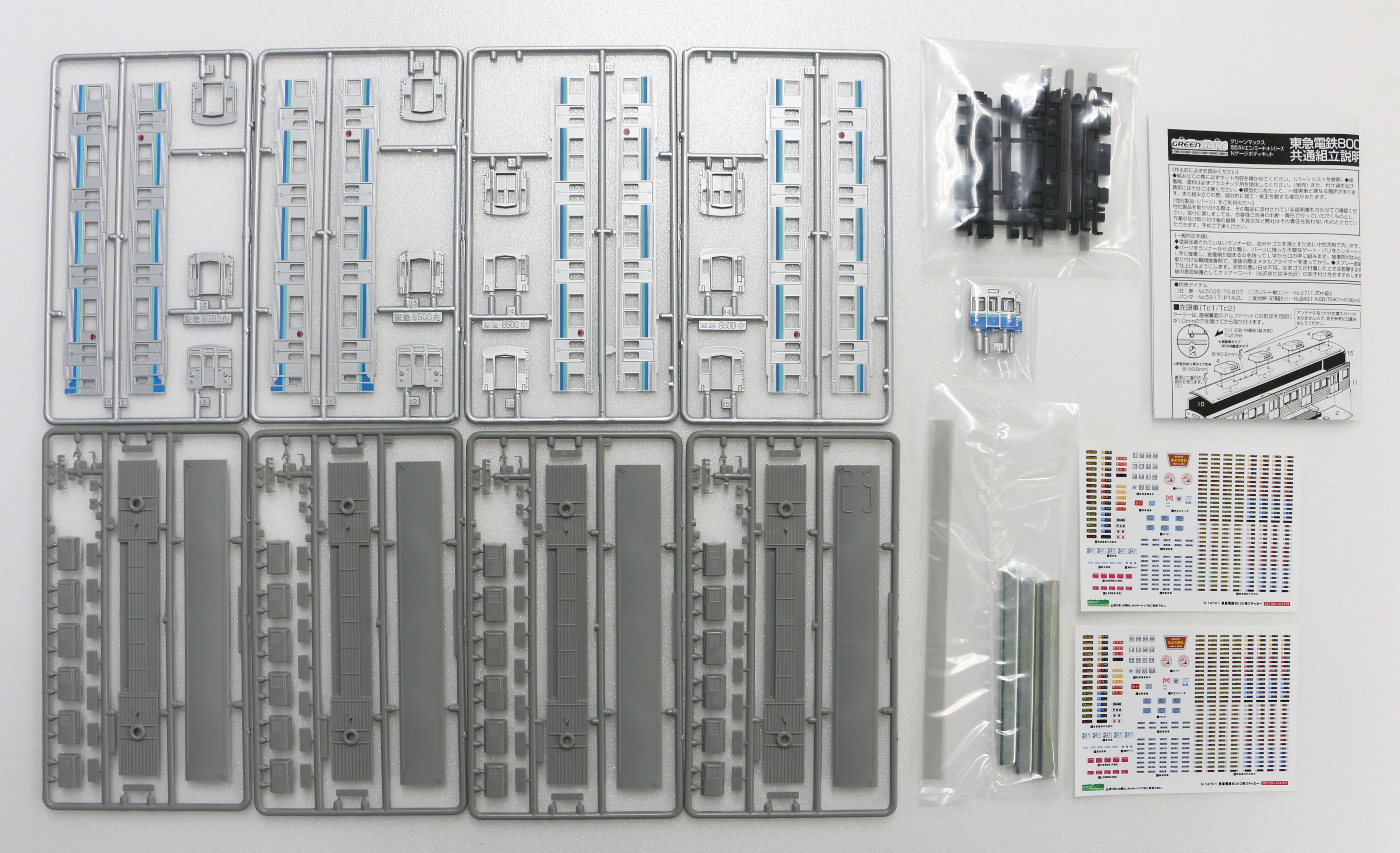 ●東横線で活躍していた8000系更新車。銀色に水色と緑色のラインを纏っていた姿を着色済みエコノミーキットで製品化