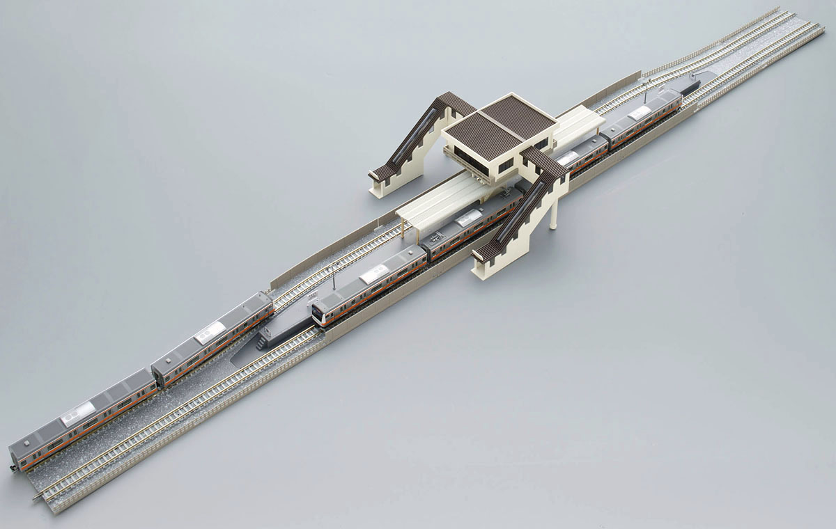 カント付レール複線パターンと組んで複線の島式駅レイアウトが組めます。