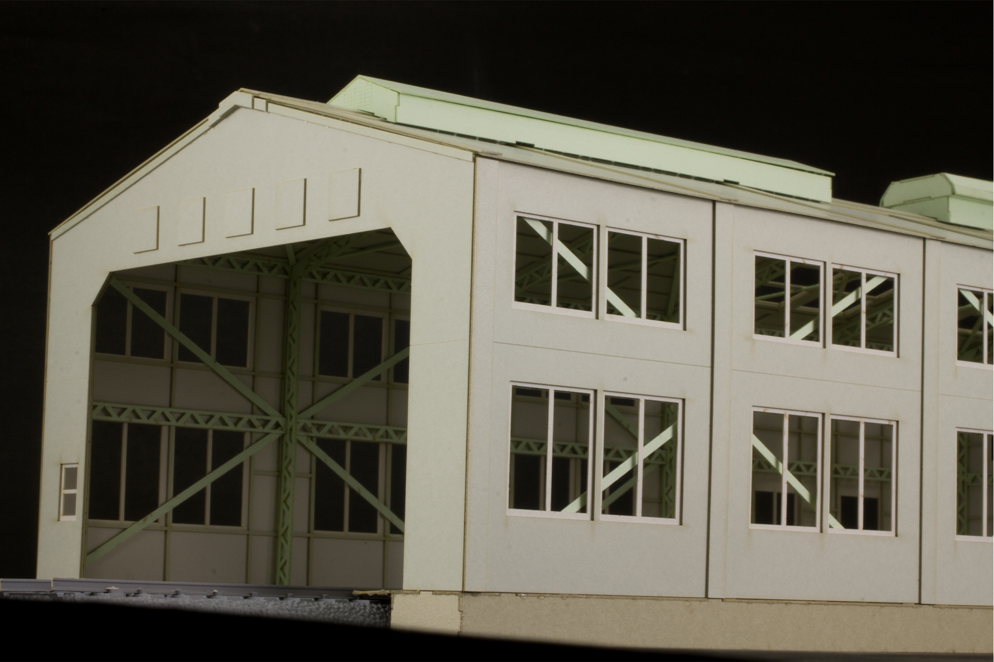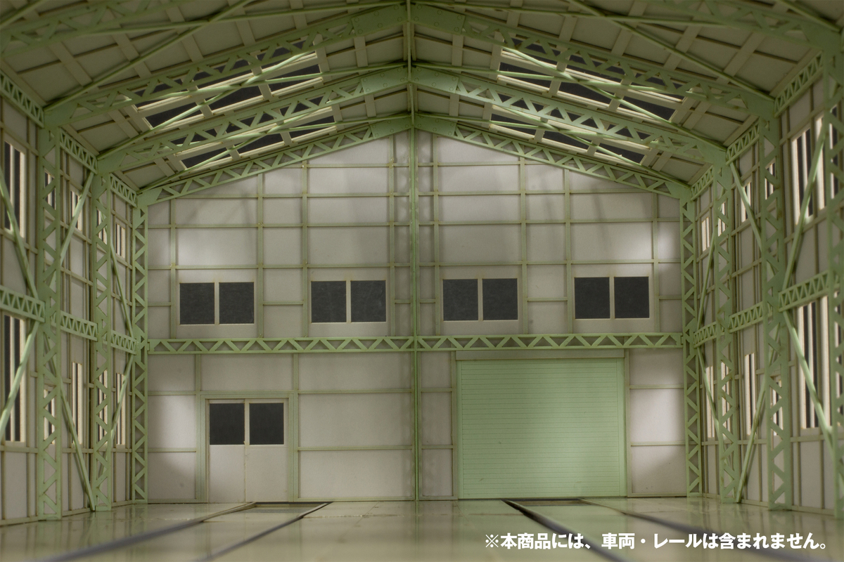サイドの壁を入れ替えることで自分好みの車庫にする事ができ、複数つなげると長編成が格納可能になります。