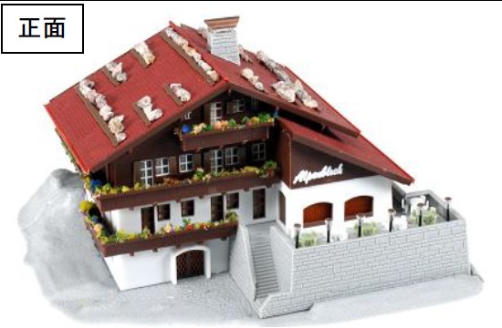 「高原のリゾートホテル」は、日本の高原にあるペンションや山小屋をイメージ。焦げ茶色の木製壁と赤い屋根が特徴♪