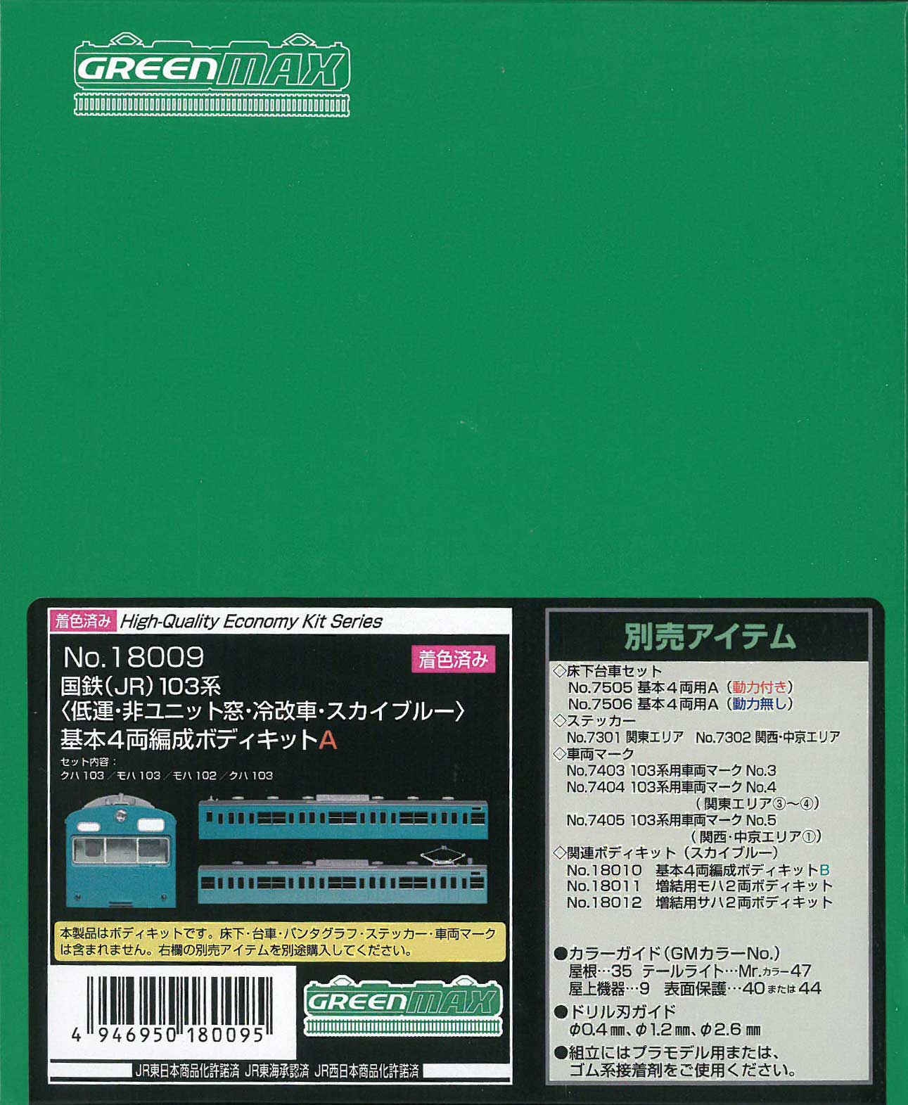 「ハイクオリティ(EVO) エコノミーキット シリーズ」(従来のEVOシリーズ)のボディパーツを、実車と近似の色合いで着色したキットで、国鉄(JR)103系のうち「低運転台・非ユニット窓」の冷房改造車をプロトタイプとした製品です。