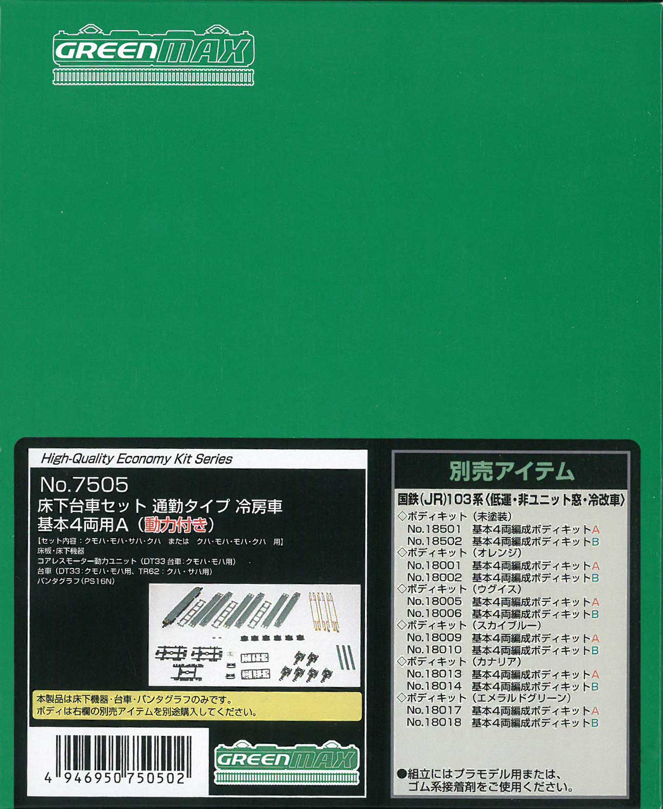 ・台車(スナップ式集電台車) ・動力ユニット(?7505のみ。フライホイール付きコアレスモーター動力ユニット)