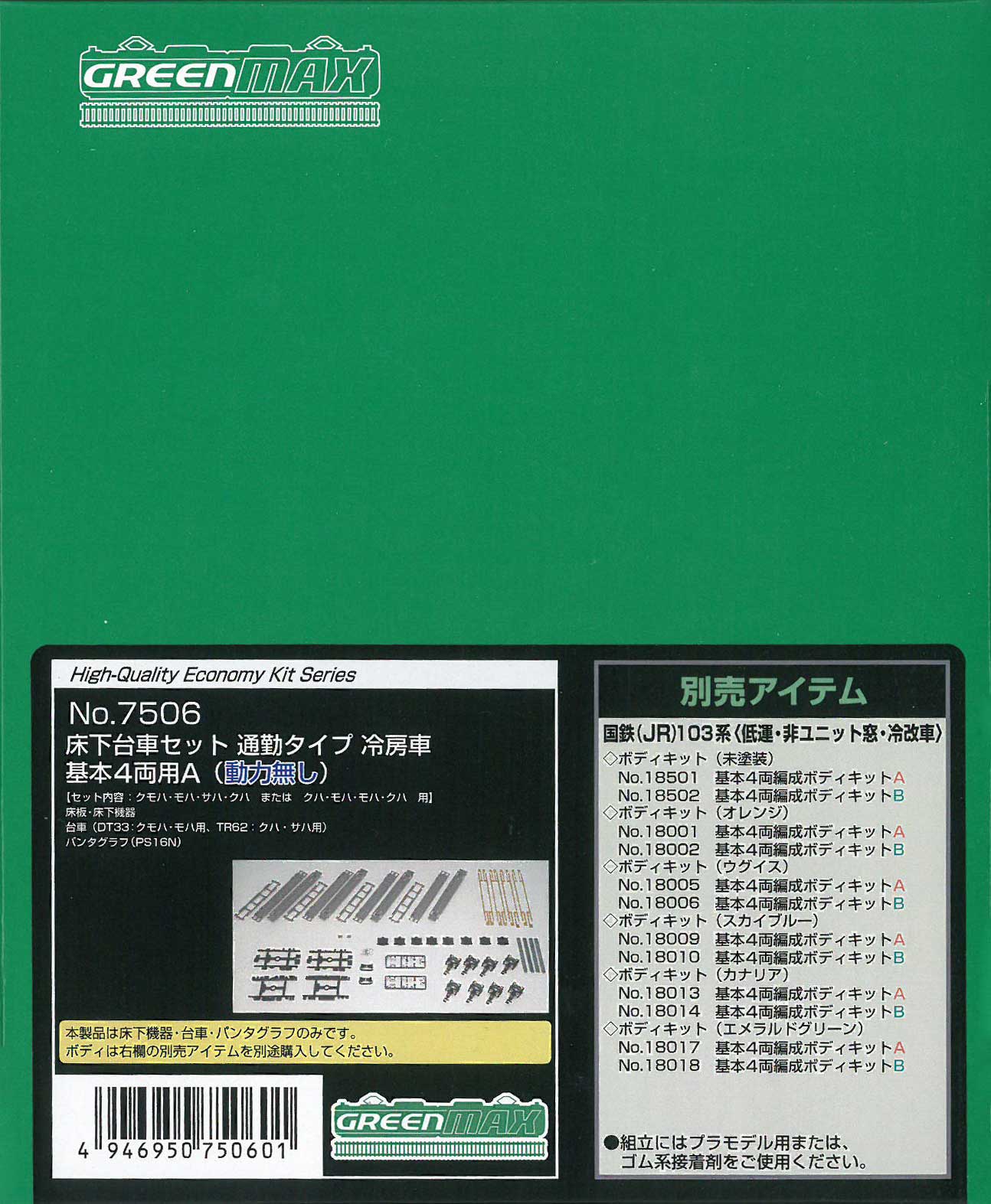 ・台車(スナップ式集電台車) ・動力ユニット(?7505のみ。フライホイール付きコアレスモーター動力ユニット)