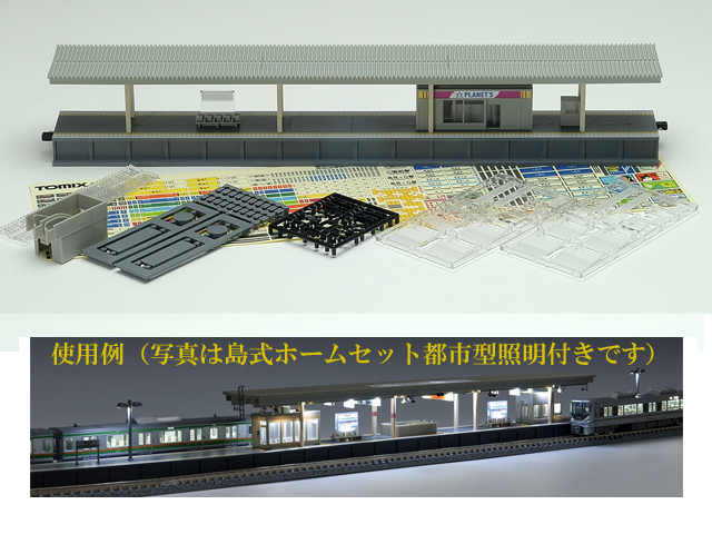 近年都市部で見ることができる島式ホームを照明付きで再現する「島式ホームセット(都市型)照明付」を延長するための製品です。