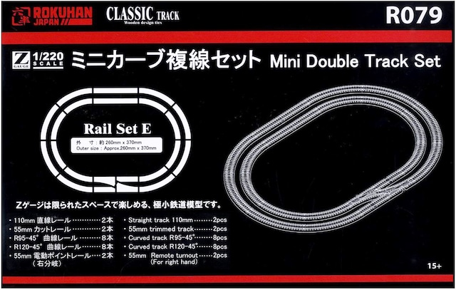 クラシックトラック レールセットE ミニカーブ複線セットは、渡り線がある小さな複線のオーバルレイアウトを作る為に必要なレールがひとまとめになったセットです。