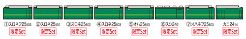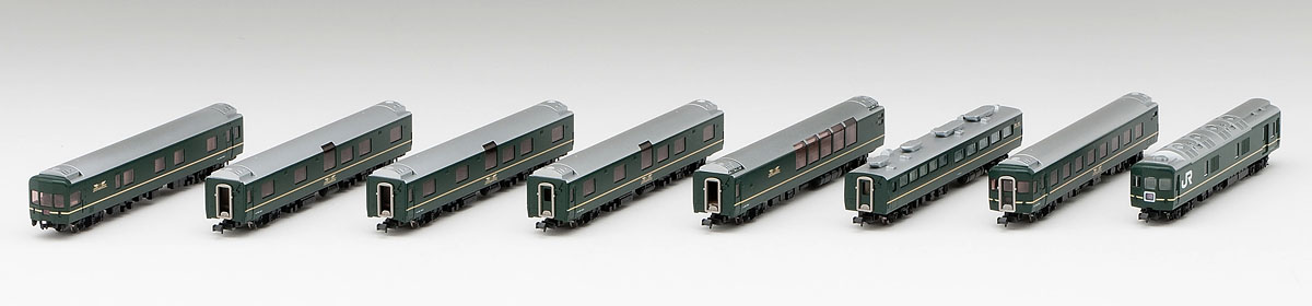 【製品仕様】・特別なトワイライトエクスプレスを再現・カニ・スロネフはトレインマーク印刷済み・カニ・スロネフはテールライト・トレインマーク点灯式・スシ24のテーブルランプ点灯式・オハネフ25は2段ベッドシートを採用・オハネフ25のテールライト・トレインマークは点灯しません・スロネフ25はダミーカプラー装着済み・オハ25用アンテナ付属・オハネフ25用幌枠・治具付属・DD51用印刷済みヘッドマーク付属・スシ24・スロネ25-502は一部形状が異なる個所が有ります。