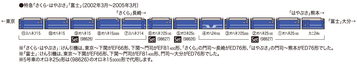 1999年より24系と14系を併結した運行に変わり「富士」「さくら・はやぶさ」の2列車運行となりました。