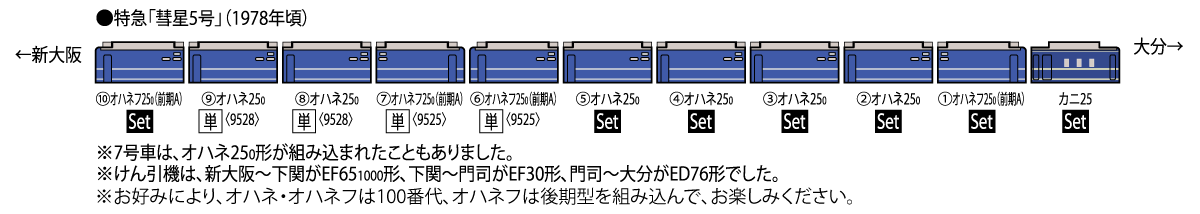 ・車番は選択式で転写シート付属(単品オハネ25除く)