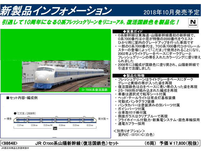 ・一部の0系7000番代は、700系7000番代ひかりレールスターの登場によって「こだま」で使用されることになり、2002年よりライトグレーをベースにダークグレーとフレッシュグリーンの帯を入れたカラーリングに塗り替えられました