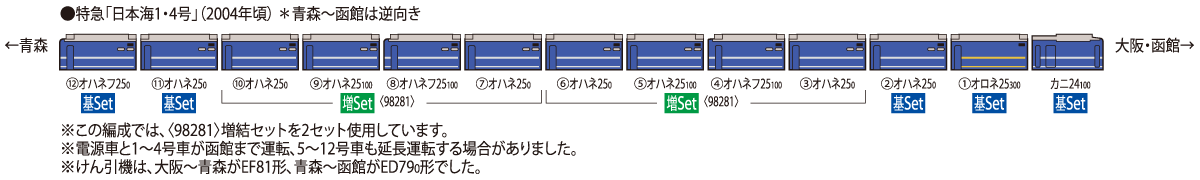 ・日本海1・4号には1998年からA寝台個室車両オロネ25-300形が連結され、2008年まで運転されていました