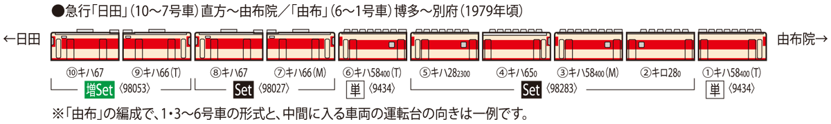 ・<98027>のキハ66・67や<98283>キハ58由布セットの増結などに使用できるトレーラー増結セット