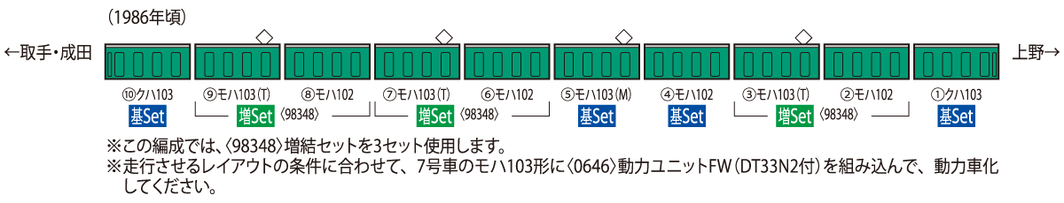 ●前面表示部の行先表示は「上野」「取手」「成田」「松戸」付属予定