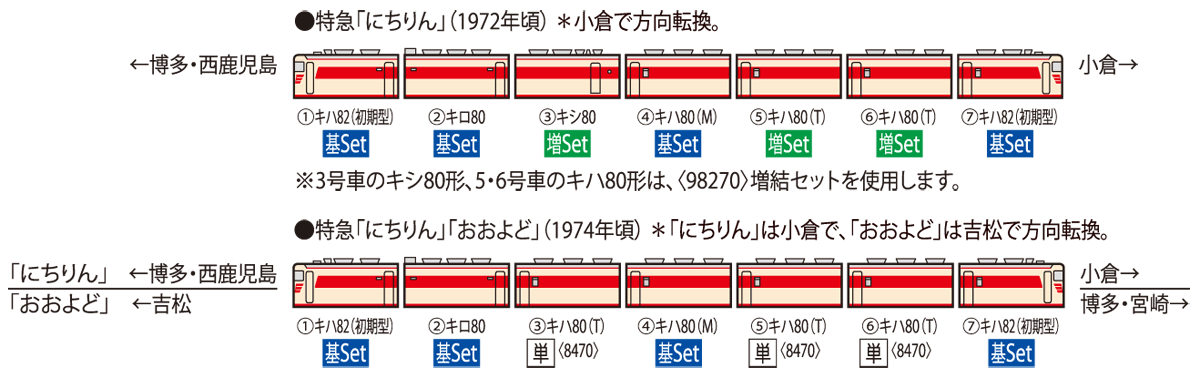 ●キハ82のJNRマークとキロ80のグリーンカーマークは印刷済み