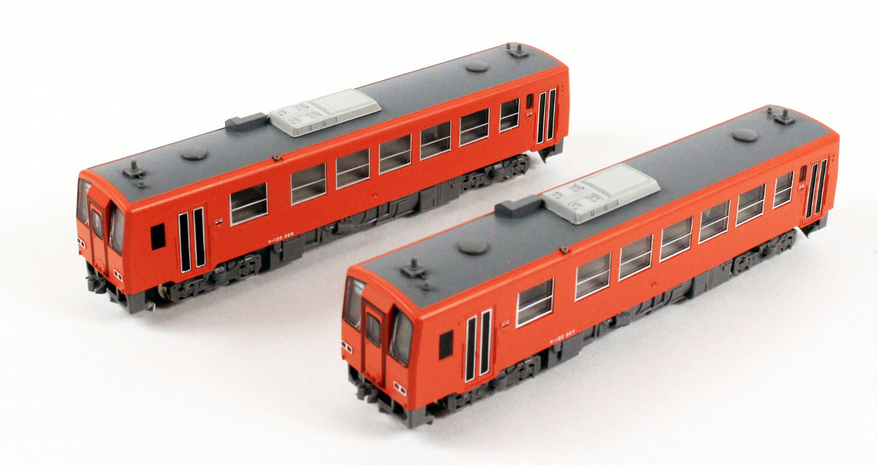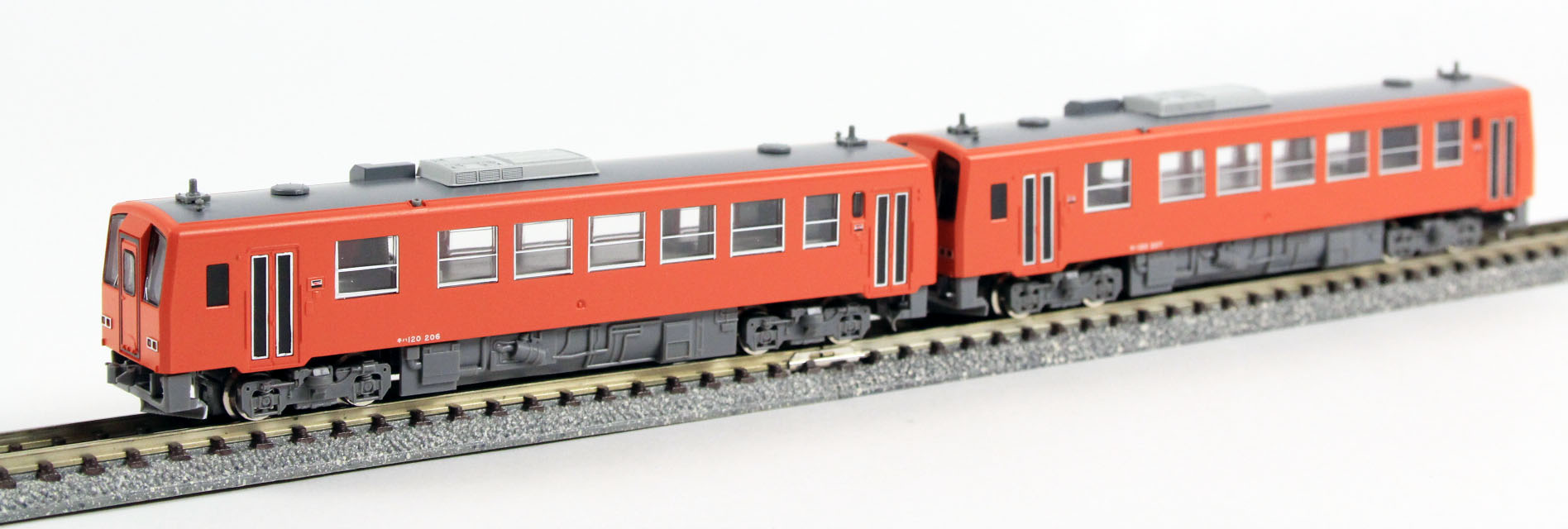 ・キハ120 309は銀色に赤・水色・青の帯を巻いた姿を再現
