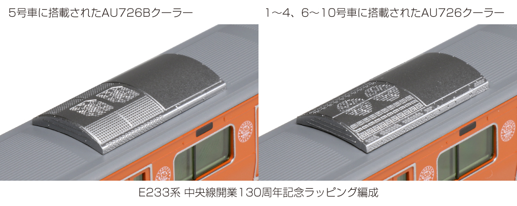 ・クーラーは5号車がトランスポーテック製、それ以外は三菱製で再現