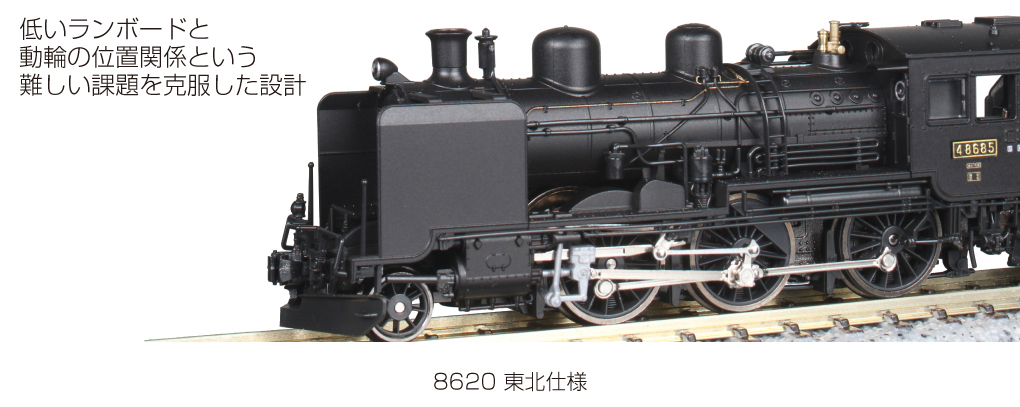 8620形は、東北地域で国鉄時代に活躍していた蒸気機関車です。大正3年(1914)誕生ながら、汎用性が高く太平洋戦争後も支線や入換用として多くの車両が全国で活躍しました。中でも東北地域では花輪線で見られた8620形三重連による貨物列車、五能線の混合列車などが有名です。
