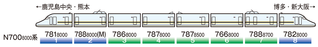 N700系8000番代は2011年春開業予定の山陽・九州新幹線直通運転用として登場した車両です。