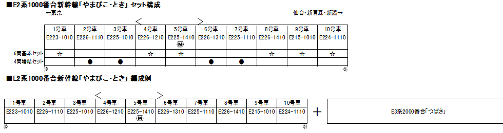 ・行先表示シール付属。現在見られる「やまびこ」「なすの」「とき」「たにがわ」の運用を収録