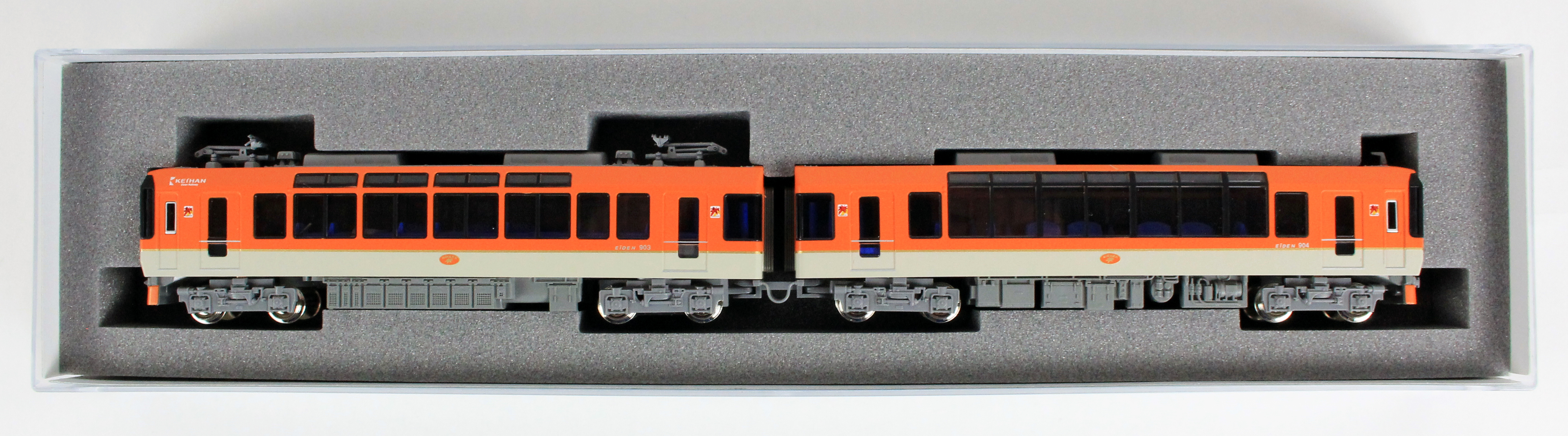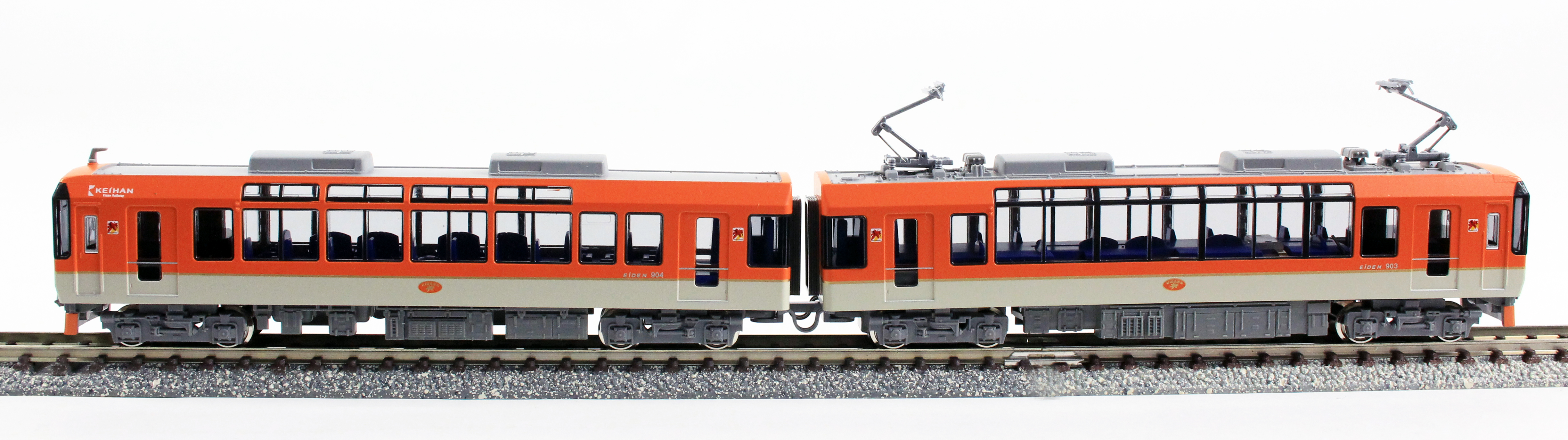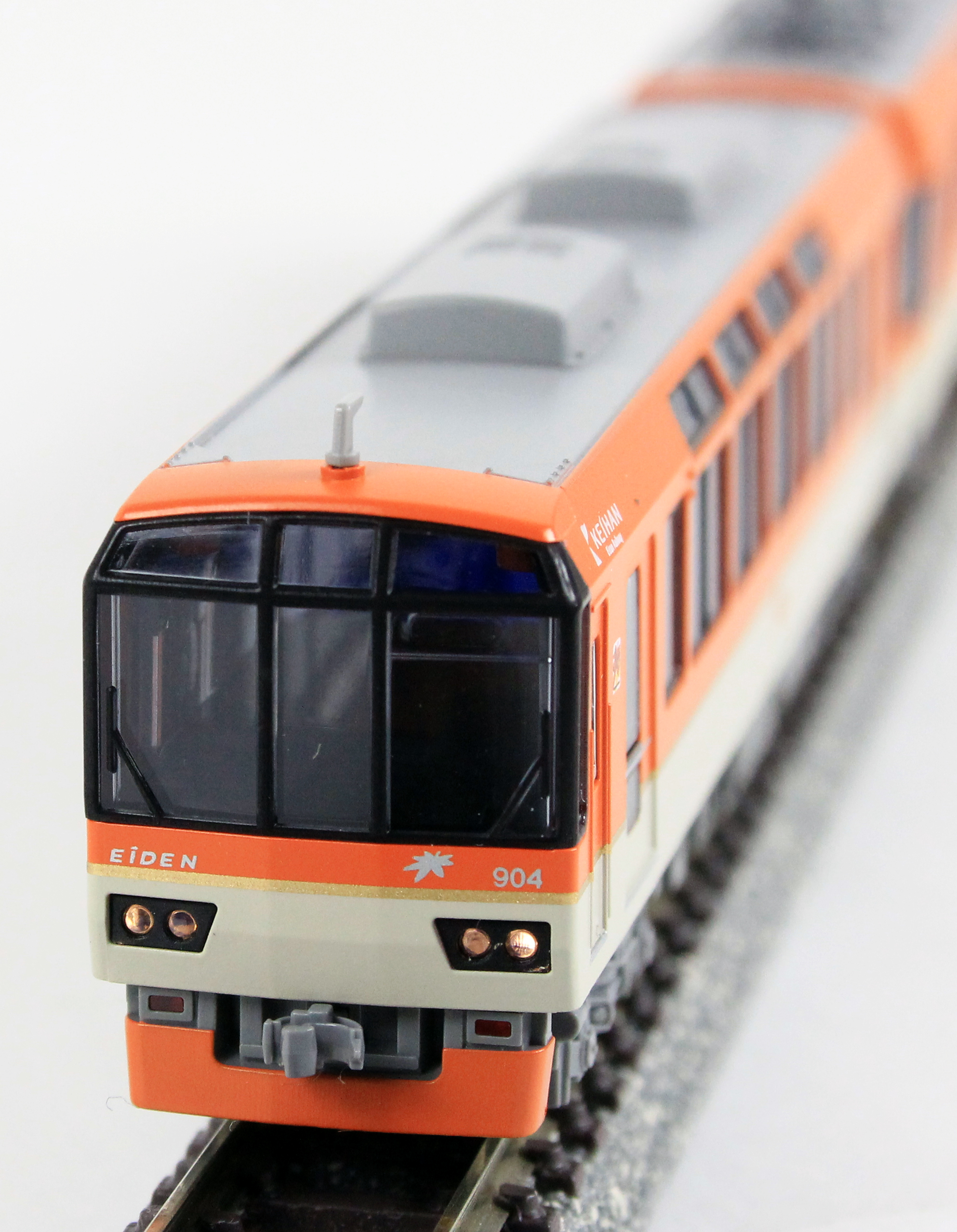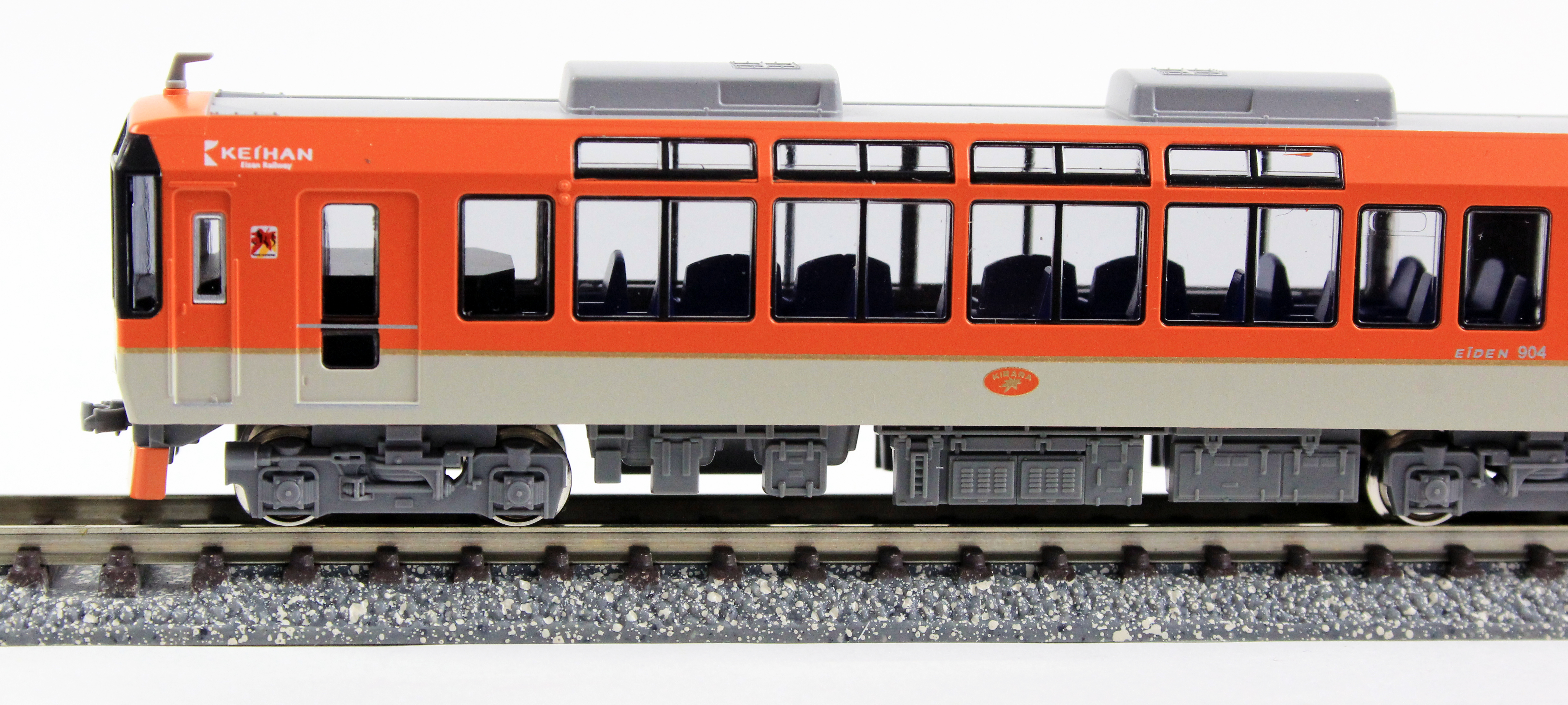 ● 前面行先表示側の乗務員室扉上に見られる“KEIHAN”ロゴマークを再現。