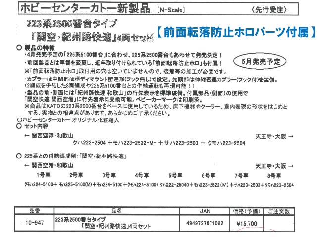 ・4月発売予定の225系5100番台に合わせ、223系2500番台タイプもあわせて発売決定
