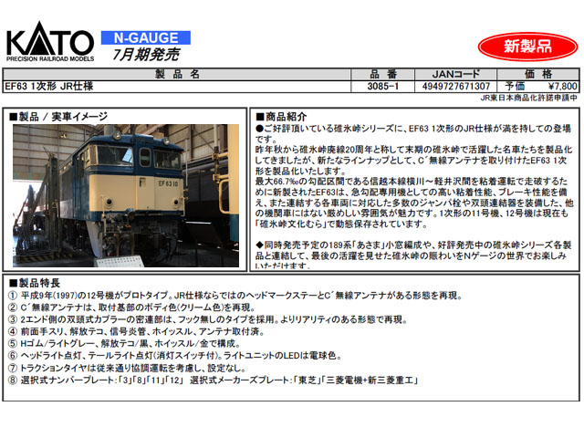 碓氷峠シリーズの更なる充実。 EF63 1次形 JR仕様のリリースです。