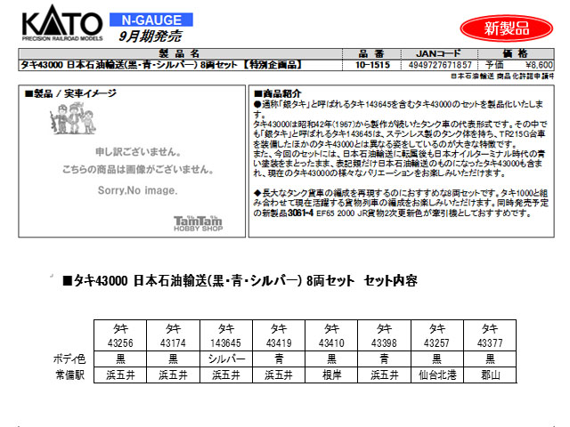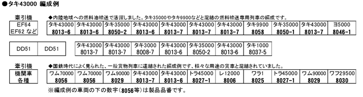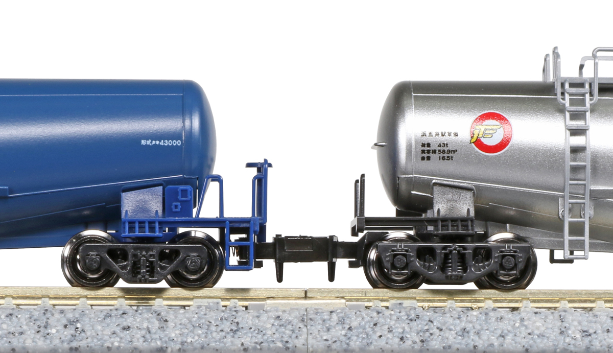また、今回のセットには、日本石油輸送に転属後も日本オイルターミナル時代の青い塗装をまとったまま、表記類だけ日本石油輸送のものになったタキ43000も含まれ、現在のタキ43000の様々なバリエーションをお楽しみいただけます。