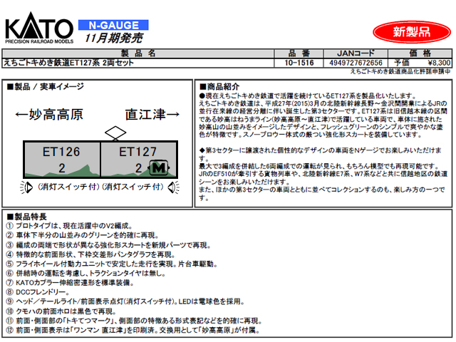 現在えちごトキめき鉄道で活躍を続けているET127系を製品化いたします。
