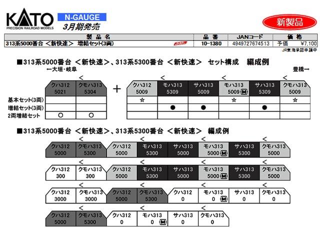 このほか、既存製品の313系5000番台や、313系0番台、3000番台と組み合わせてお楽しみください。