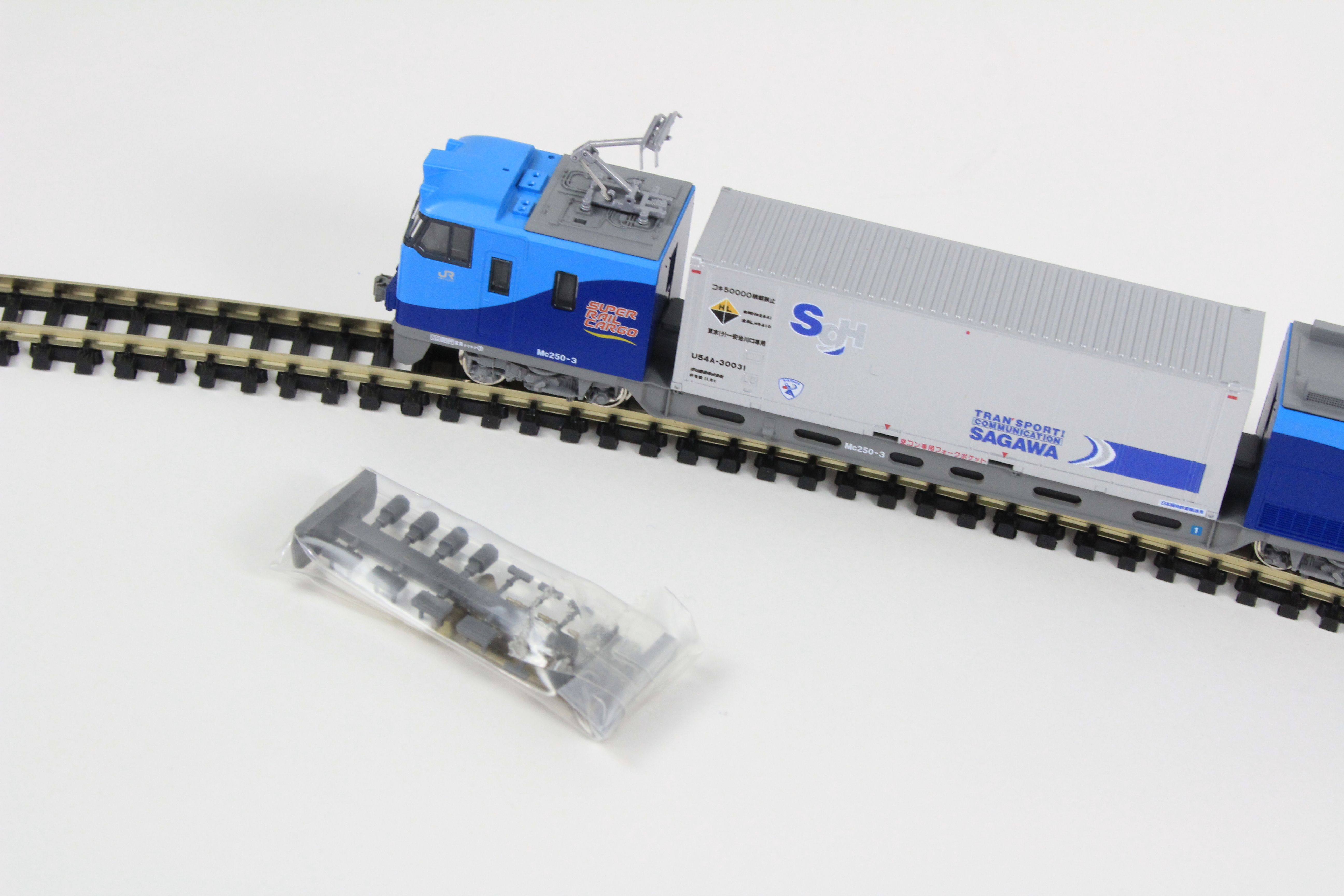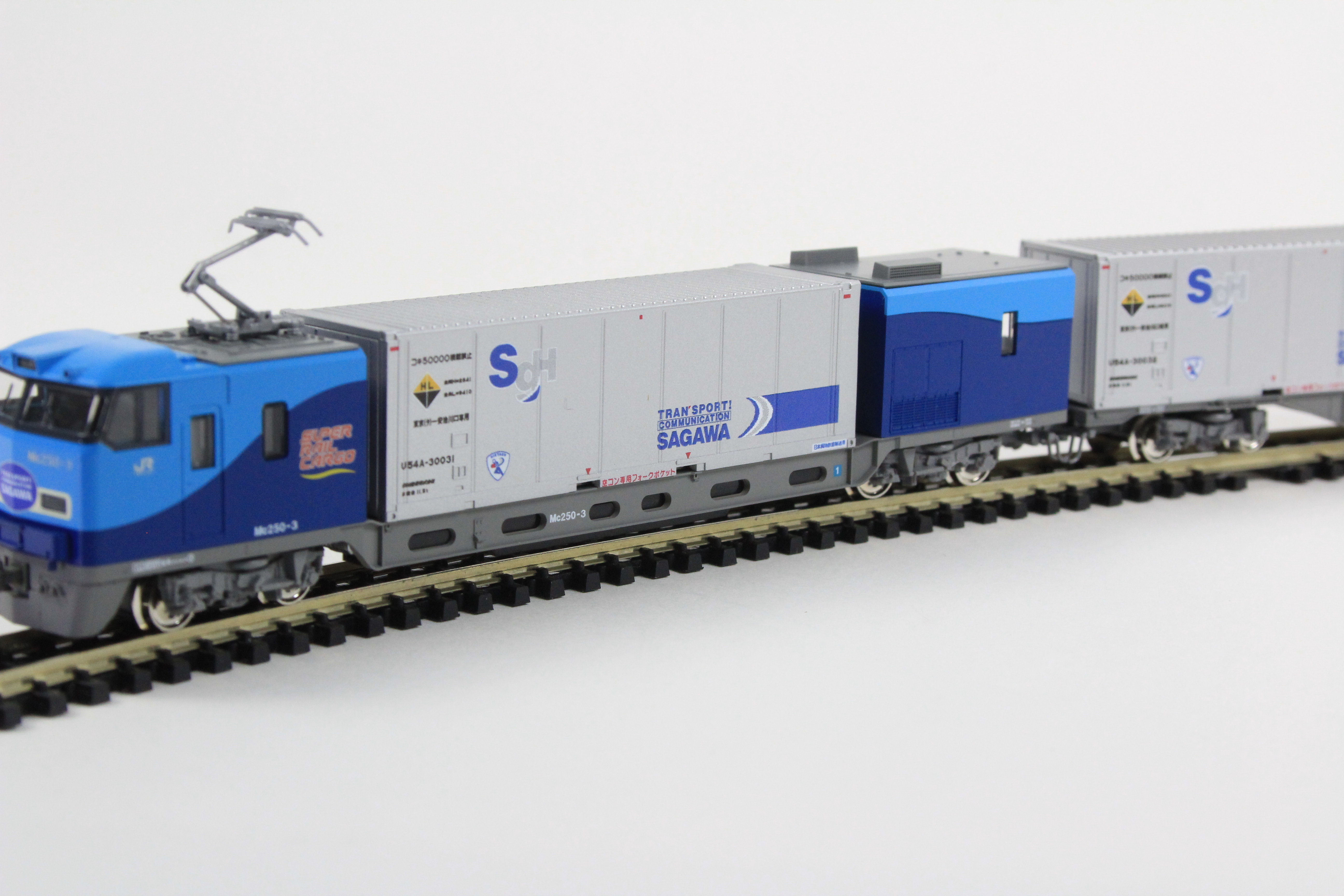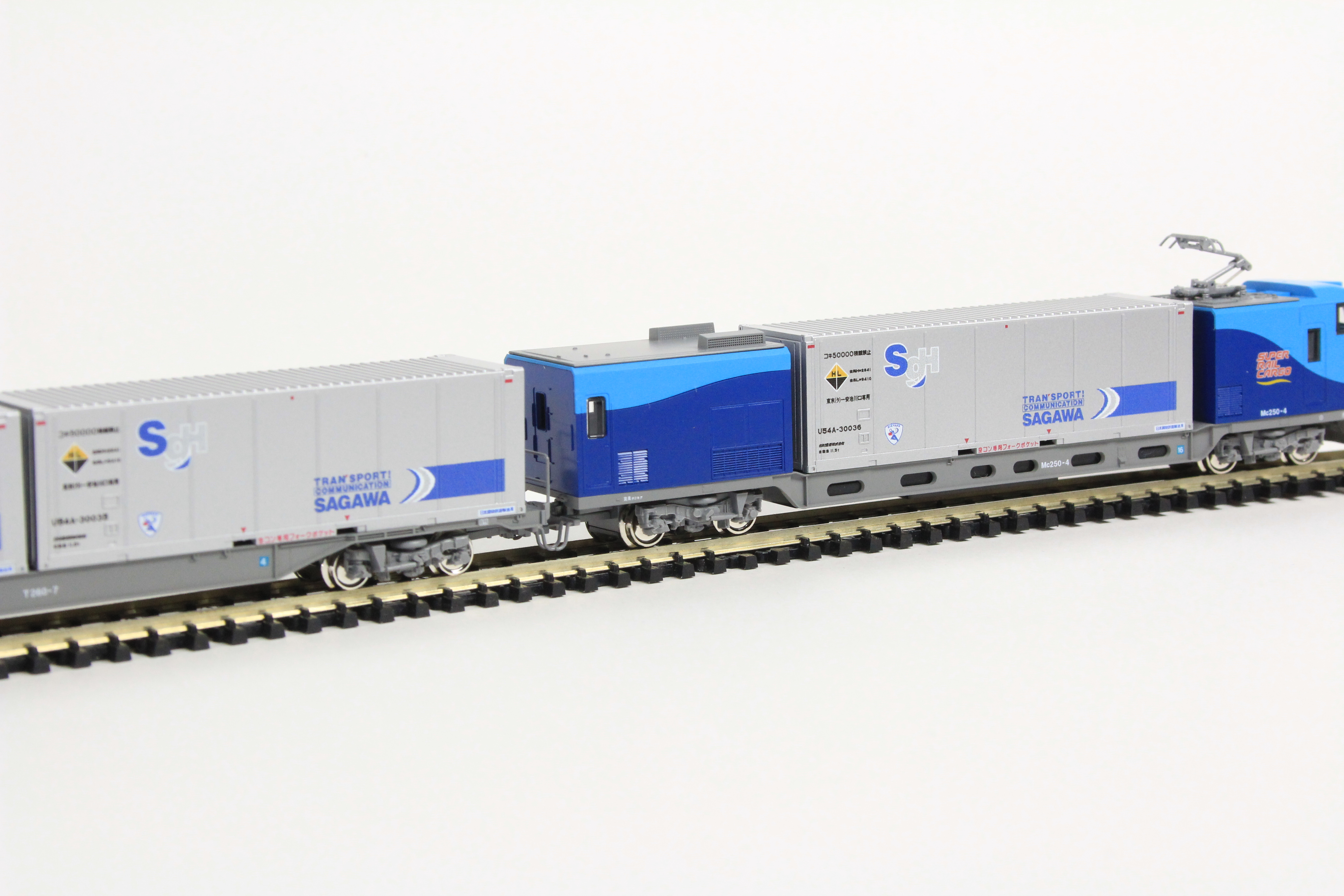 ・従来とは異なる印象のシンプルなデザインのU54A形コンテナを的確に再現。コンテナは動力車を除き、取り外しが可能。