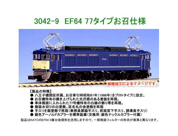 EF64 77号機(八王子機関区所属)は、1986年10月にかいじ国体で往路を原宿~甲府間、復路を大月~原宿間にて国鉄最後のお召し列車を牽引しました。