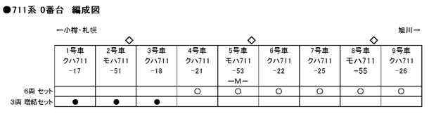 実車は国鉄初の交流電車として昭和42年(1967)に量産先行車が登場の翌年から量産車を製造。小樽〜滝川間の交流電化開業を果たした函館本線で活躍を始めた北海道初の国鉄電車です。セミクロスシートの車内設備で近郊形に分類されますが、急行形同様のデッキ付2扉車体を持ち普通列車のほかにも急行「かむい」(小樽〜旭川)やノンストツプ急行「さちかぜ」(札幌〜旭川間)などの運用で活躍しました。特に「さちかぜ」は当時の特急列車と遜色のない速さを誇った俊足急行として知られていました。