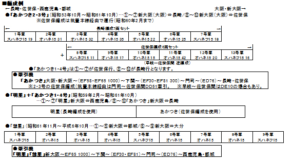 寝台特急「あかつき」は昭和40年(1965)10月1日のダイヤ改正で運用が始まり、京阪神と九州を結ぶ夜行特急(関西ブルートレイン)の祖とも呼ばれ、最後まで生き残った列車です。
