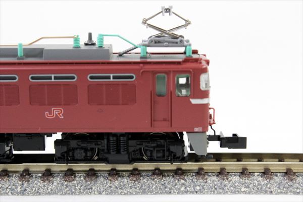・緑碍子、スノープロウ非装備、JR無線アンテナ装着、動輪はボックス輪芯、JR九州の赤いJRマークを印刷済。