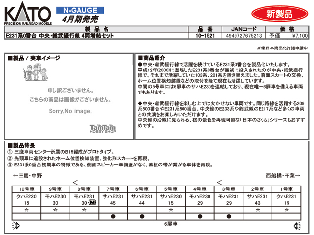 ●中央・総武緩行線で活躍を続けているE231系0番台を製品化いたします。