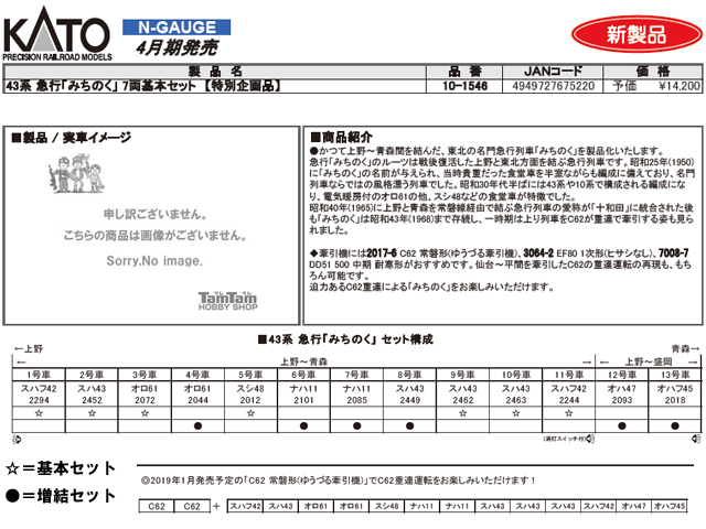 ●かつて上野〜青森間を結んだ、東北の名門急行列車「みちのく」を製品化いたします。