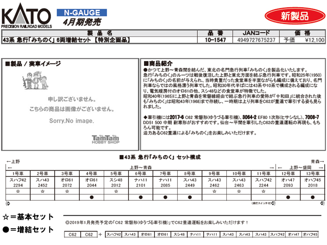 ●かつて上野〜青森間を結んだ、東北の名門急行列車「みちのく」を製品化いたします。