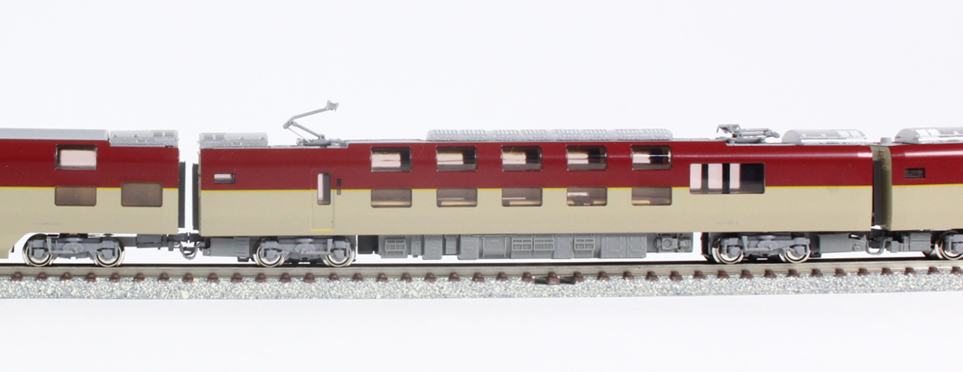 ●モハネ285はパンタグラフが2基に増設された姿を再現。また、モハネ285-200・-3200は東芝製の床下機器が搭載された形態を再現
