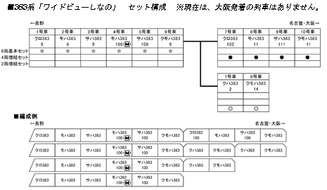 383系は、381系の置換え用として、1998年の長野オリンピックに備えた特急「しなの」のイメージアップ用に開発された振り子式車両です。中央西線を中心に、大阪までの運用など、特急「ワイドビューしなの」で活躍中です。