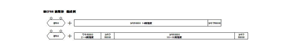 ● EF66形は、昭和41年(1966)に開発されたEF90形(試作車)の成果を基に量産化された機関車で、昭和43年(1968)にデビューしました。高い運転席やヨーロッパの電気機関車を彷彿とさせるヘッドライト周辺のデザインは、それまでの標準化された国鉄形電気機関車のイメージを打ち破る斬新なものでした。
