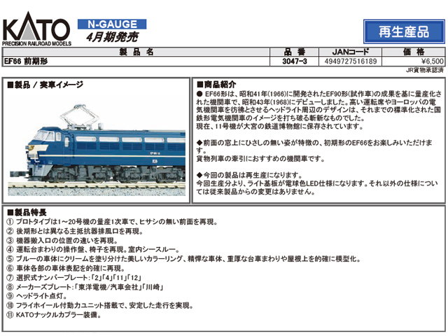 ◆前面の窓上にひさしの無い姿が特徴の、初期形のEF66をお楽しみいただけます。