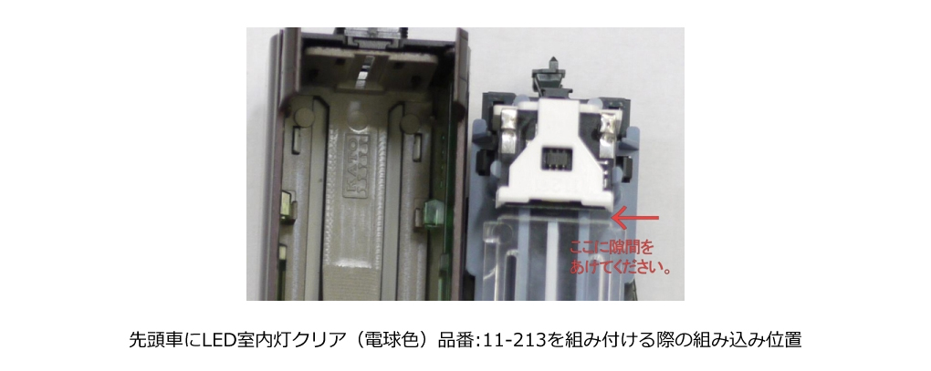 ?連結器は先頭部が密自連形ダミーカプラーを装備、中間部はボディーマウント式のKATO密連カプラー標準装備。